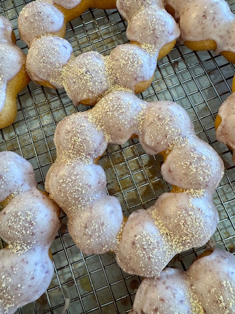 Note, minimum online order is 1 dozen. All of our mochi donuts contain gluten, milk and eggs. Icings and glazes usually contain milk and may include nuts but please refer to the monthly menu to plan accordingly.